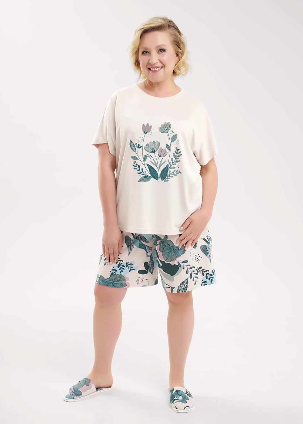 Пижама женская CLE LP15-1196 (AW25/26 Адель) бежевый/св.зелёный