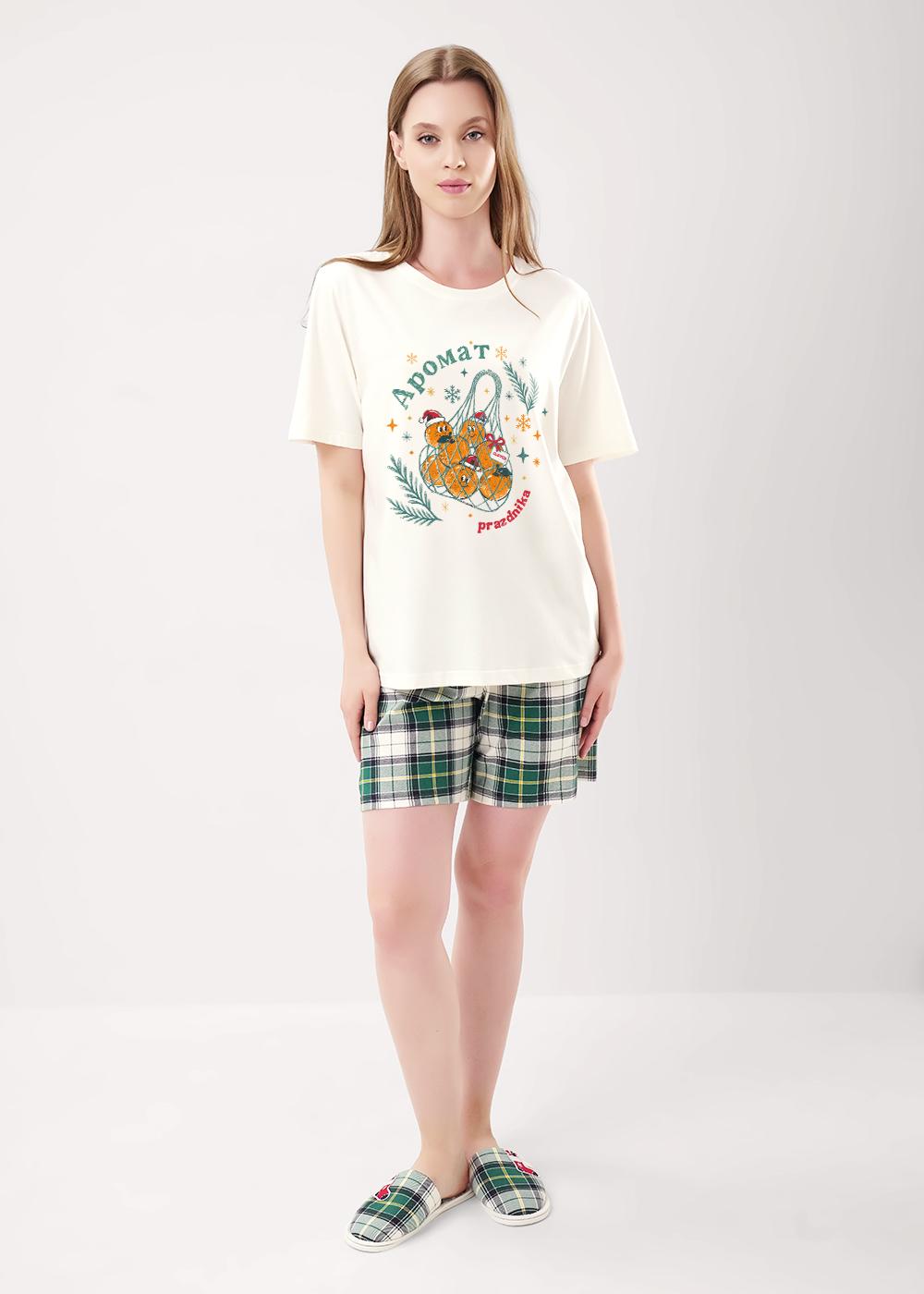 Пижама женская CLE LP15-1199/1 (AW25/26 Новогоднее чудо) молочный/т.зелёный