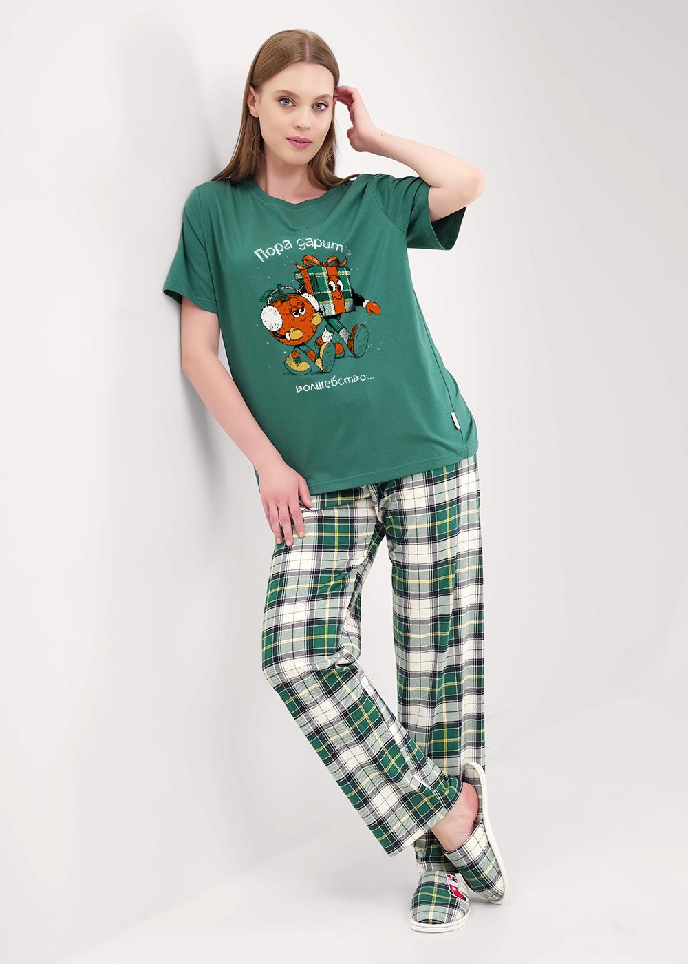 Пижама женская CLE LP15-1199/3 (AW25/26 Новогоднее чудо) т.зелёный/молочный